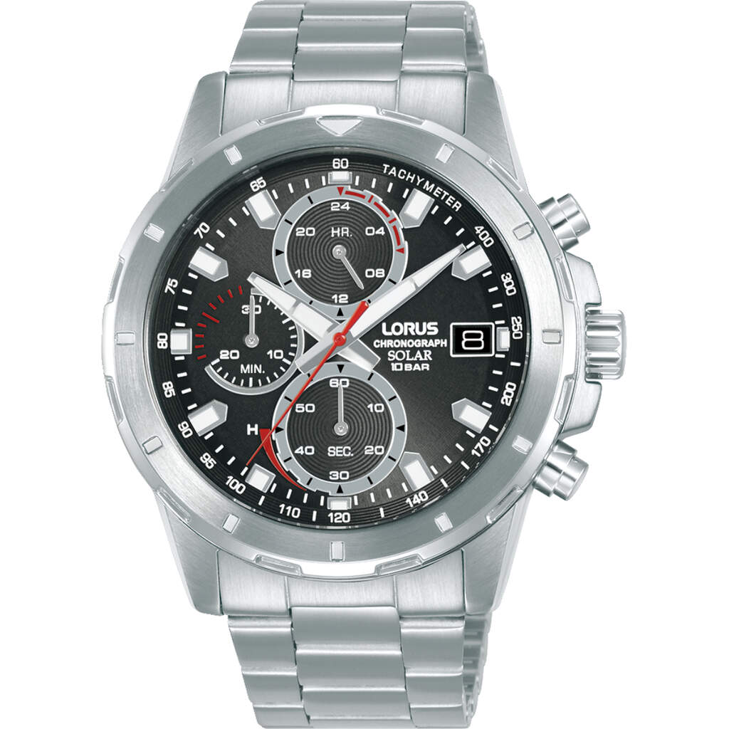 Lorus RZ601AX9 Solar Çelik Gri Siyah Kadran 43 mm Erkek Kol Saati